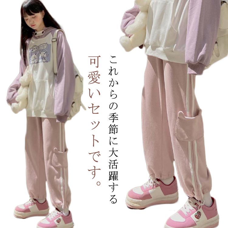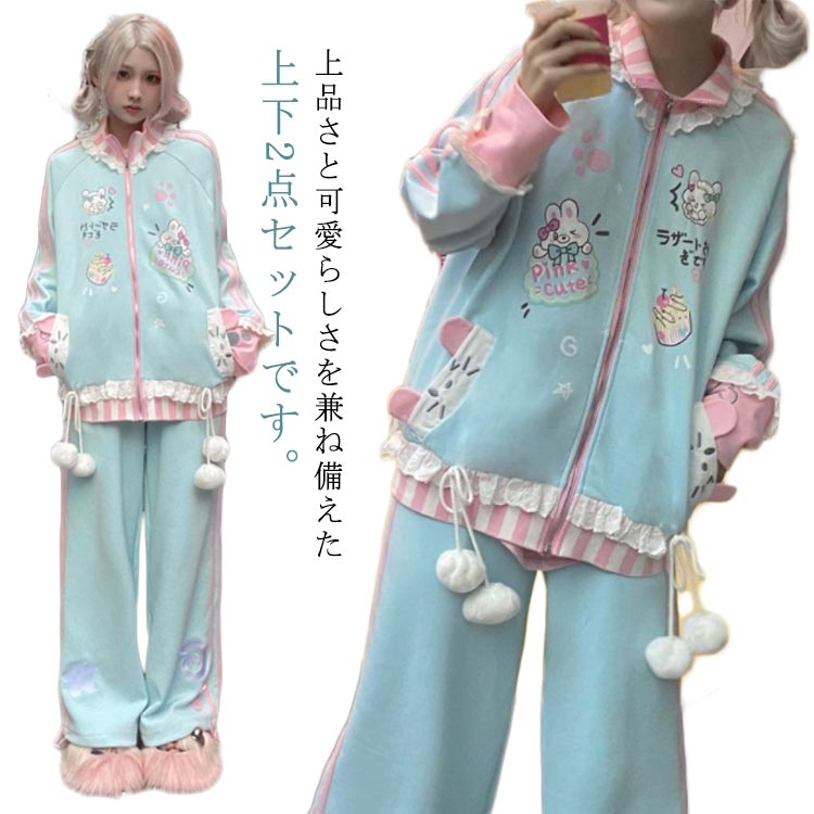 地雷系 ジャージ 上下セット レディース ウサギ セットアップ トレーナー ロングパンツ サブカル系 スポーツウェア 秋冬 オシャレ 大きいサイズ