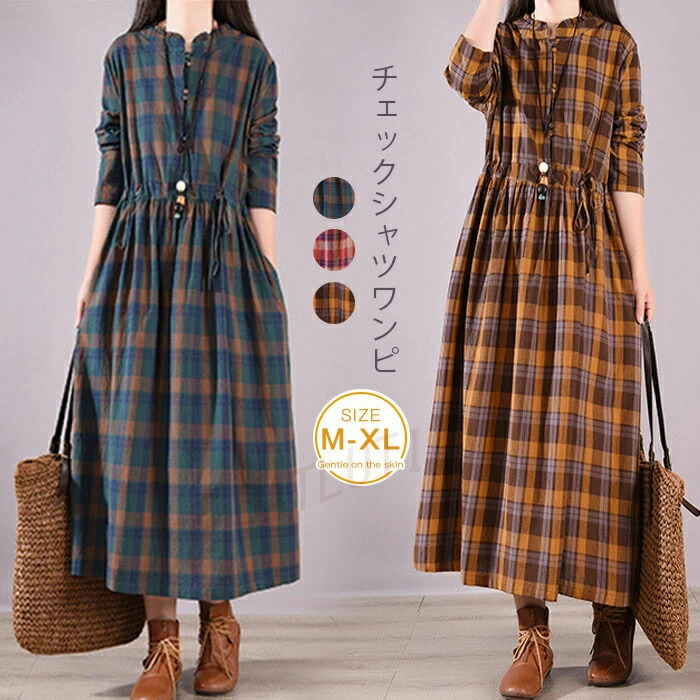 ロングワンピース チェック ロングワンピ ロング丈ワンピース マキシワンピース ミモレ ミモレ丈ワンピース ミモレ丈 ギンガムチェック