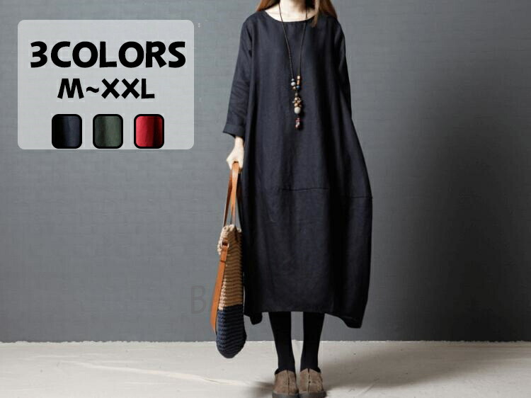 リネンワンピース 春 夏 秋 秋冬 レディース 綿麻 麻 ロングワンピース ミディアム丈 ロング マキシ丈 きれいめ Aライン ワンピ 長袖