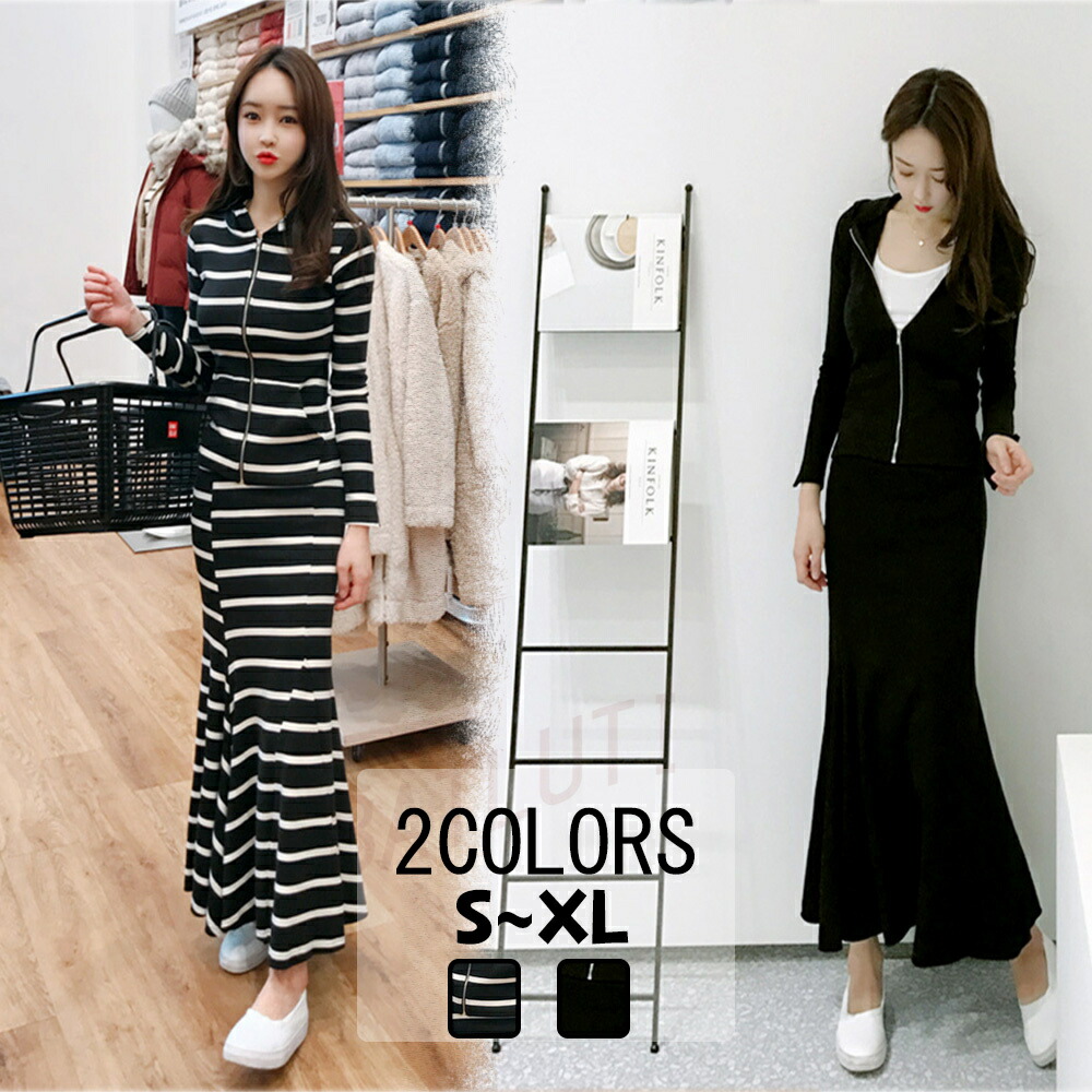 カジュアルスカートセット長袖 スリム スリット入り お洒落 マーメイド ヒップラップ 大人 韓国風 ファッション