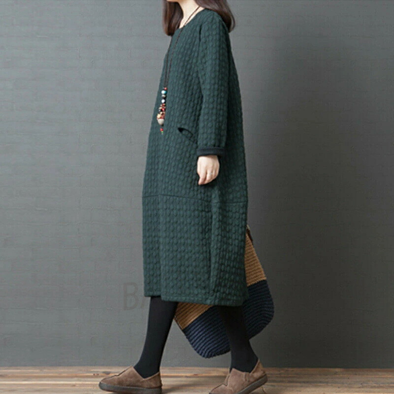 ロングワンピース ロング 中綿 かわいい 可愛い きれいめ Aライン 大人 綿 コットン ミディアム丈 膝丈 リゾート カジュアル ミモレ丈 ワンピ 長袖