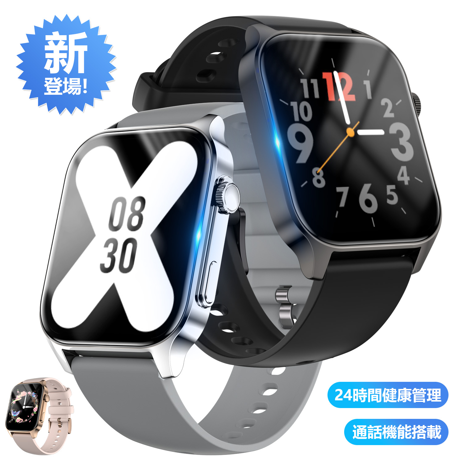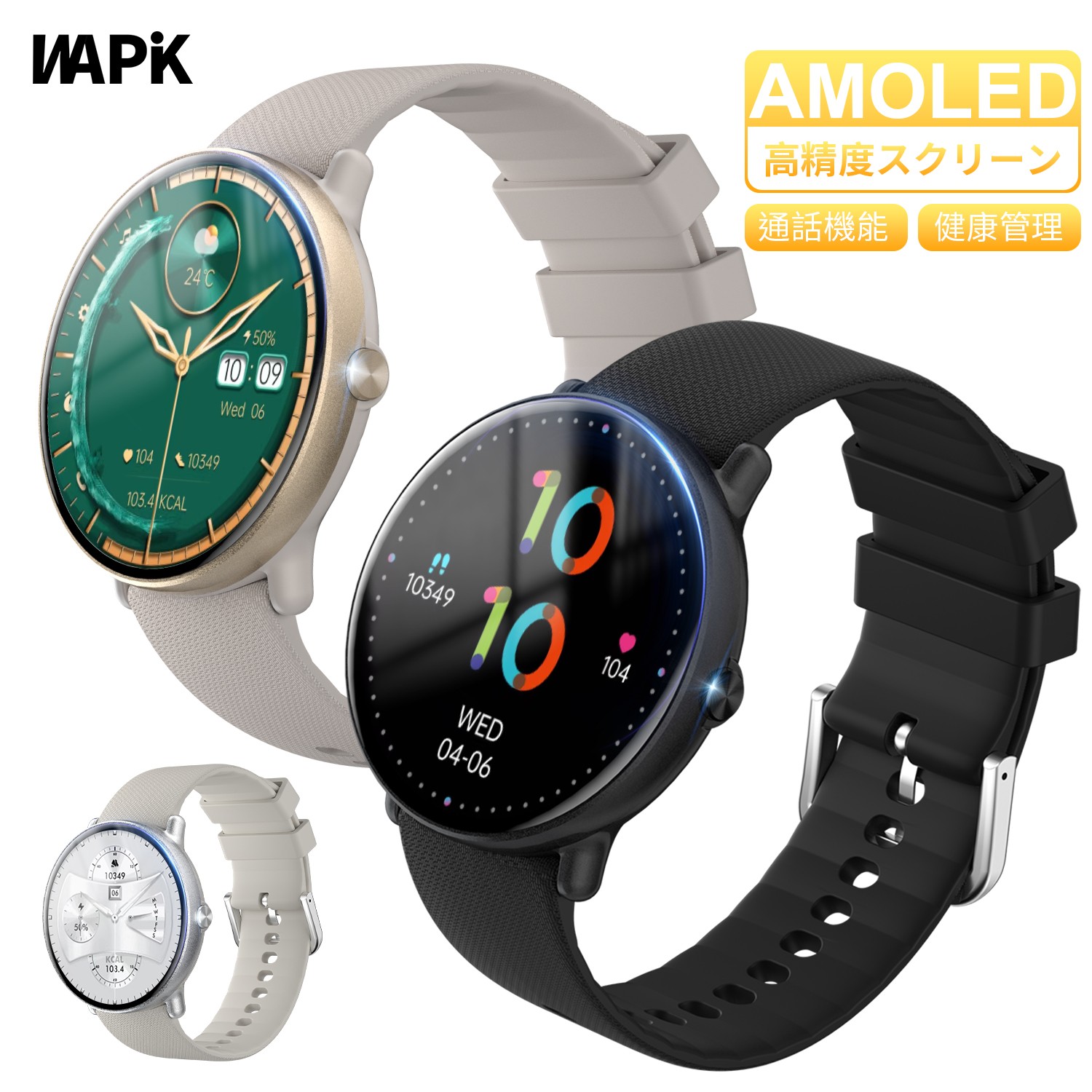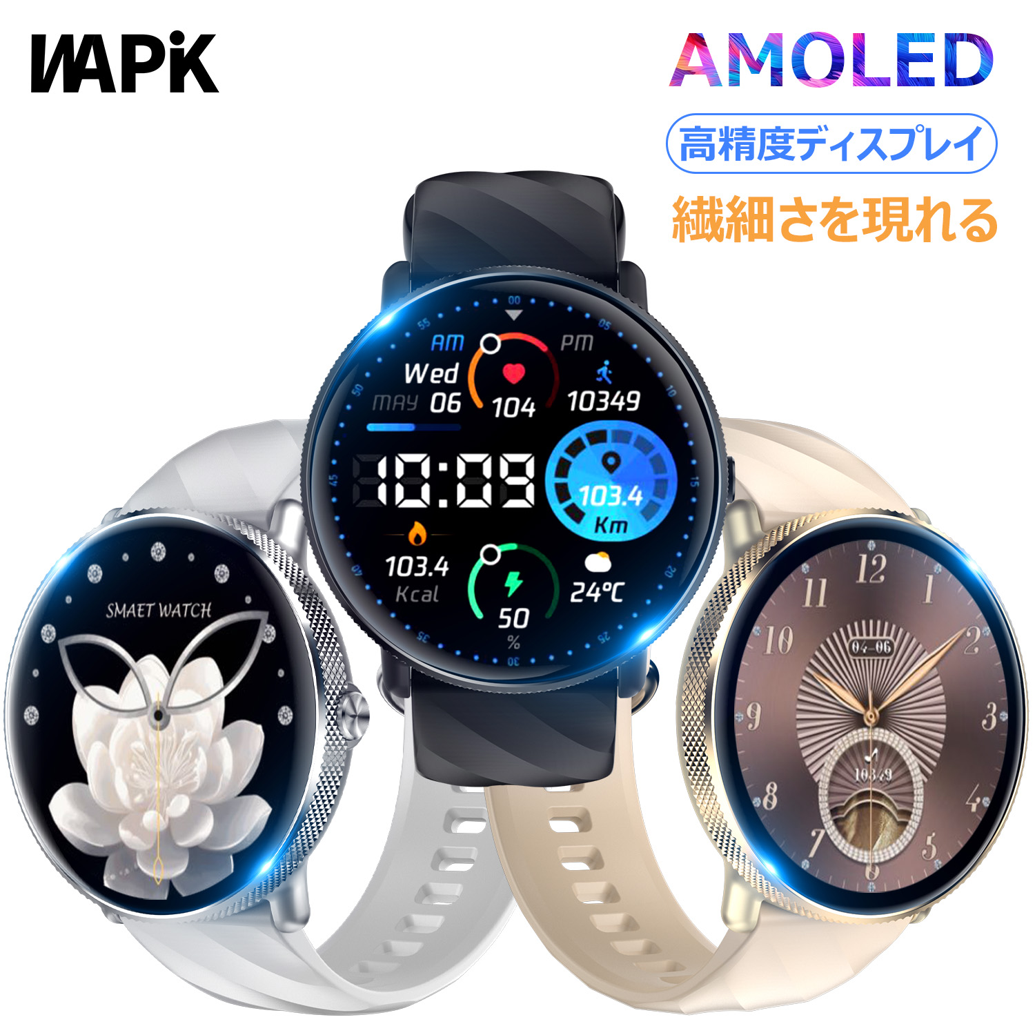 スマートウォッチ 高解像度466*466 鮮やかな表現力 運動モード搭載 24時間健康管理 常時点灯 文字盤変更可 x対応 長待機 超軽量 装着フィット プレゼント