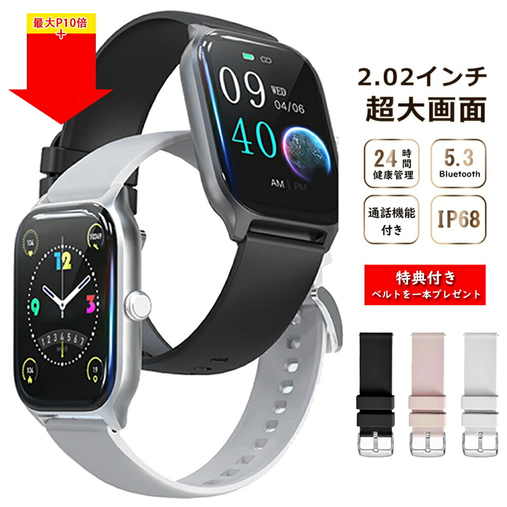 赤字覚悟 実質2016円 スマートウォッチ レディース メンズ 5.3 2.02インチ大画面 多機能 通話機能 着信 メッセージ通知 68防水 文字盤カス