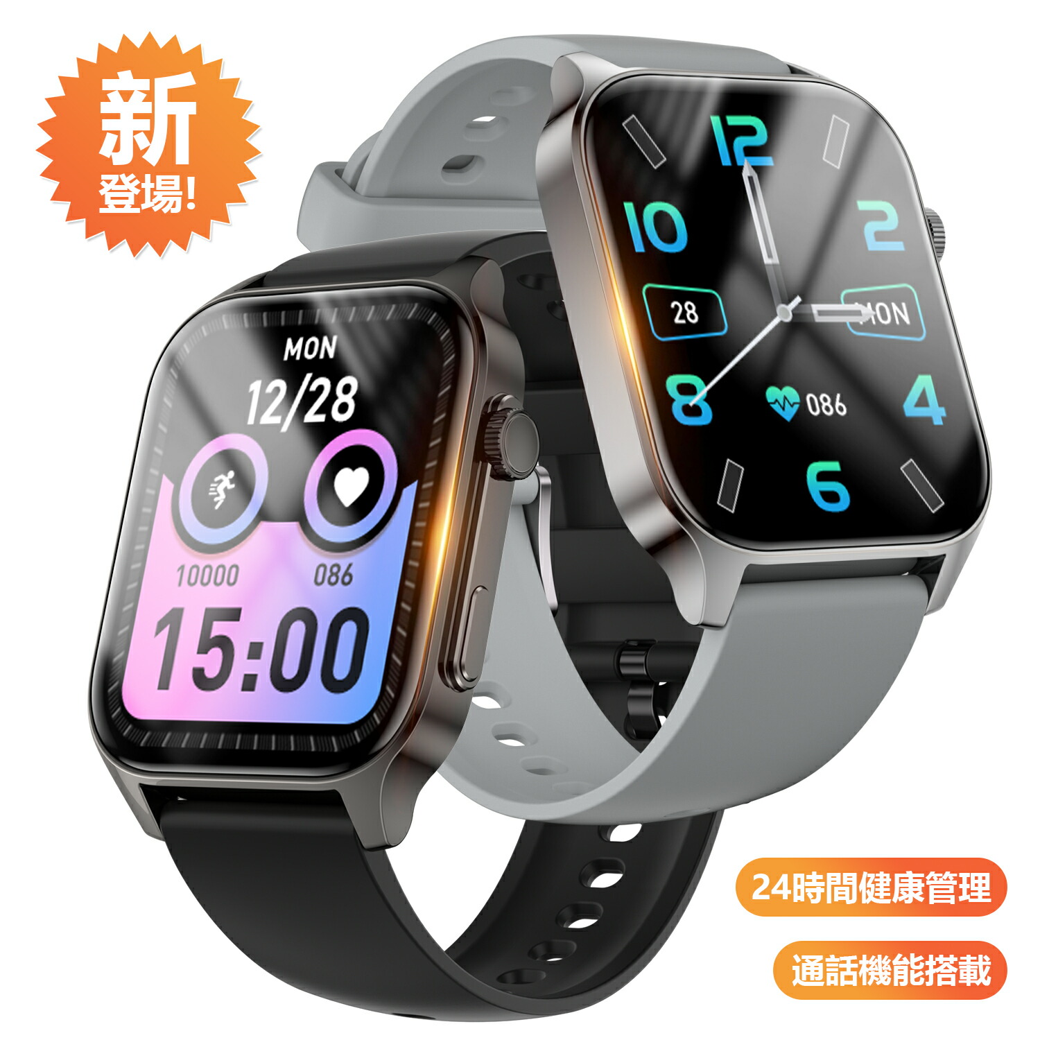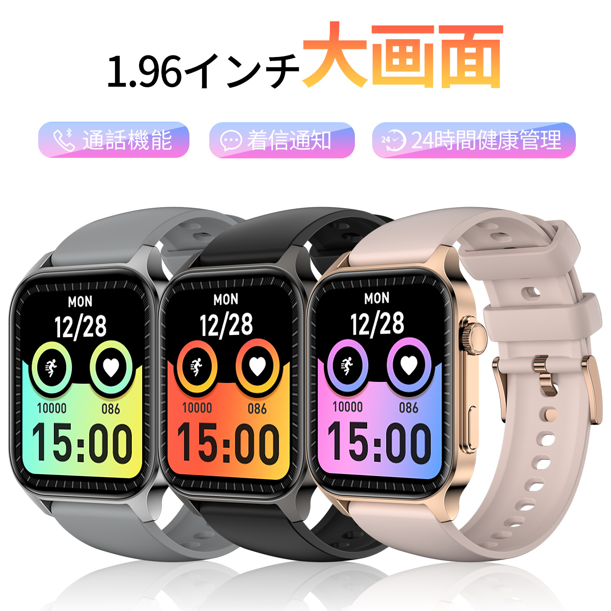 スマートウォッチ ウォッチ スマートウォッチ 大画面 歩数計 時計 カロリー消費 睡眠 アラーム 日本語 天気予報 音楽制御 男女兼用 父の日 ギフト 2024