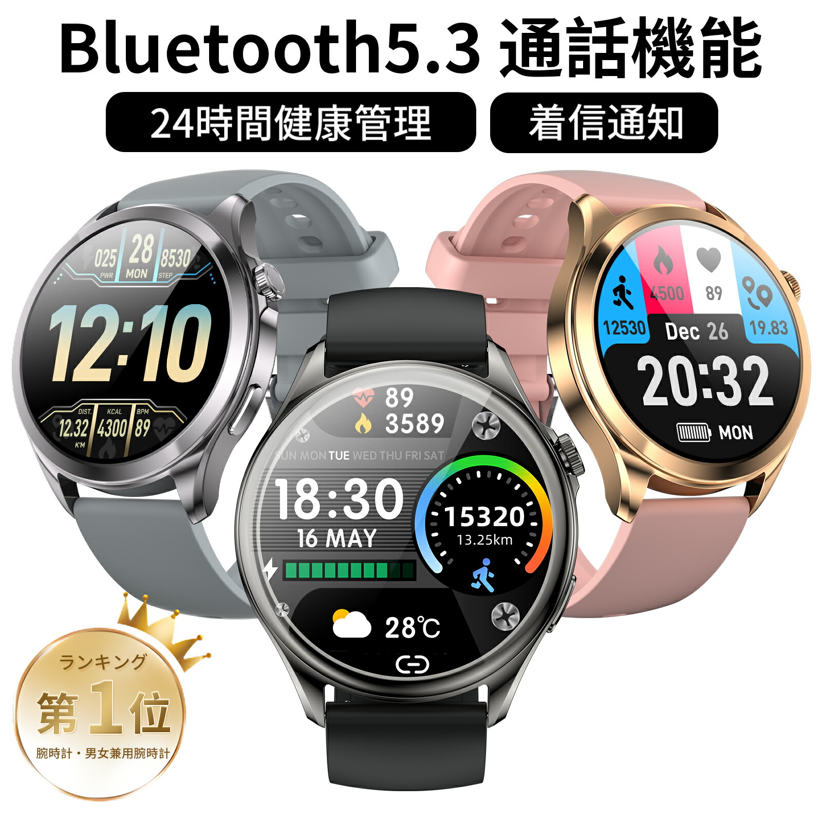 リニューアル登場 スマートウォッチ 5.3 通話機能 レディース 歩数計 時計 カロリー消費 睡眠 アラーム 距離 天気予報 音楽制御 日本語 誕生日 おすすめ プレゼント