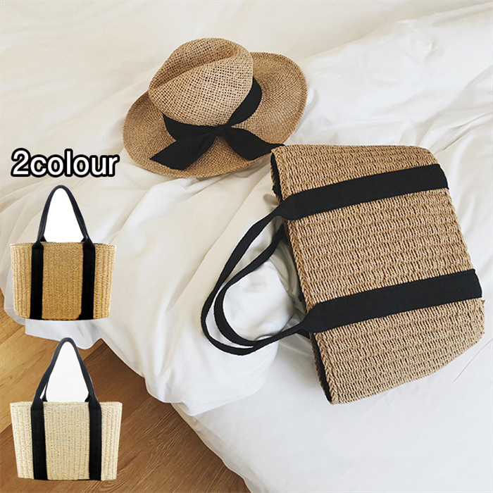 かごバッグ レディース 草編みバッグ ストローバッグ かごトート バッグ 内布巾着付き 大容量 肩掛け 無地 ビーチバッグ 外出 花見 旅行 海辺 夏バッグ