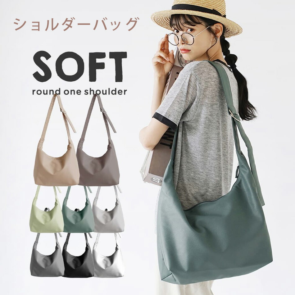 ショルダーバッグ レディース バック 鞄 カバン ショルダー ワンショルダー 斜め掛け フェイクレザー 収納 4サイズ 通勤 オフィス 大容量 軽量 大きめ 夏◆ソフトラウンド ワンショルダーバ