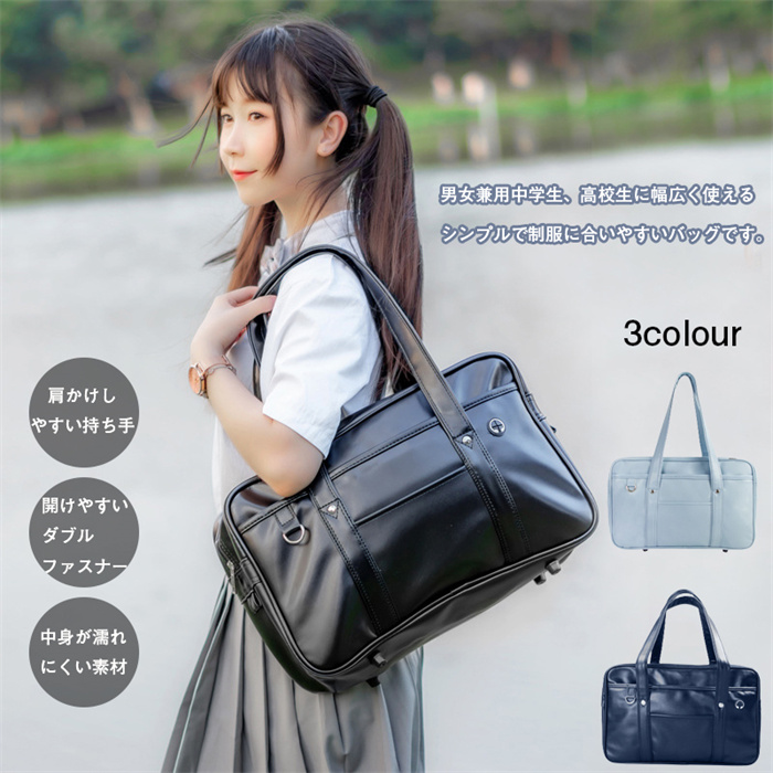 スクールバッグ スクバ ダブルファスナー仕様 イヤホン穴なし 持ち手改良 4対応 通学 お出かけ お洒落 女子 カジュアル