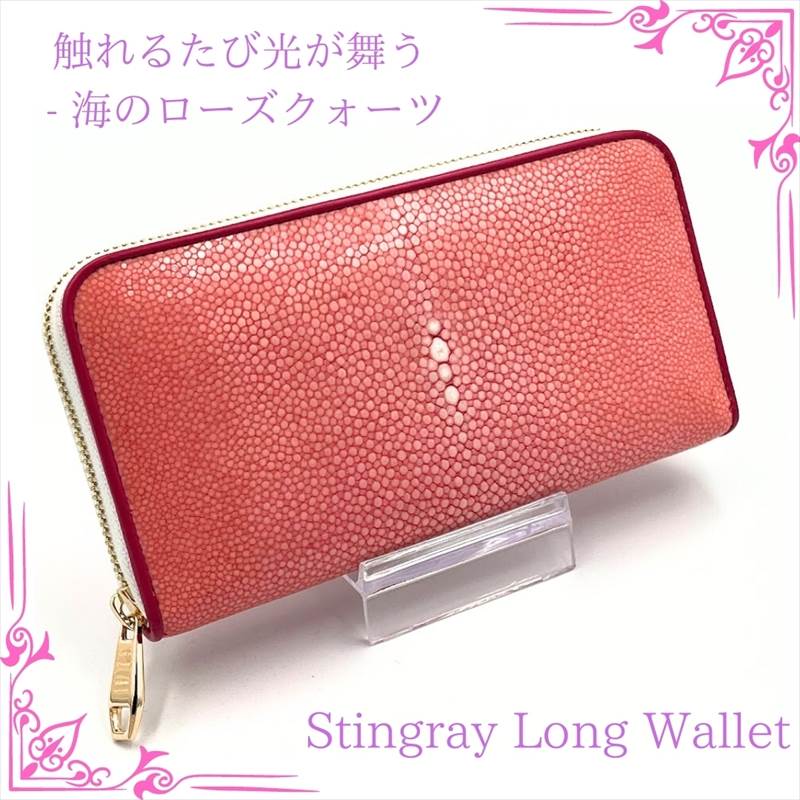 深海の銀河を手にする スティングレイ ガルーシャ 長財布 エイ革 レザー ウォレット 観音開 ラウンドファスナー ピンク