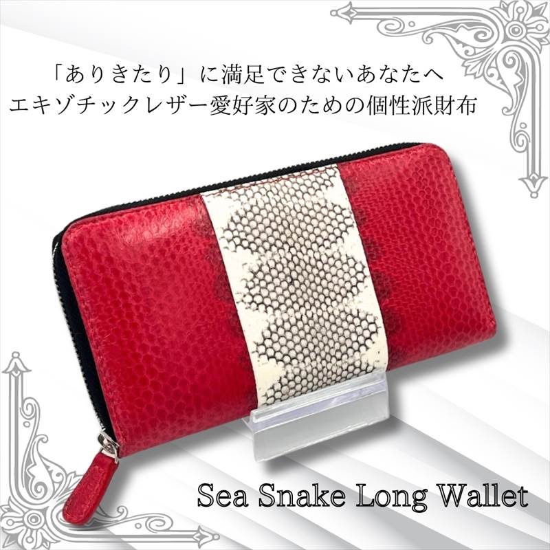 個性的 高級 エキゾチックレザーの女王 シースネーク 本革 海蛇 長財布 バイカラー 光沢 高品質メンズ レデース