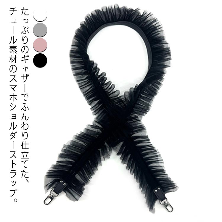 シルバー金具 かわいい チュールフリルスマホショルダーストラップ ショルダーストラップ おしゃれ バッグ用 ショルダーベルト 付け替え