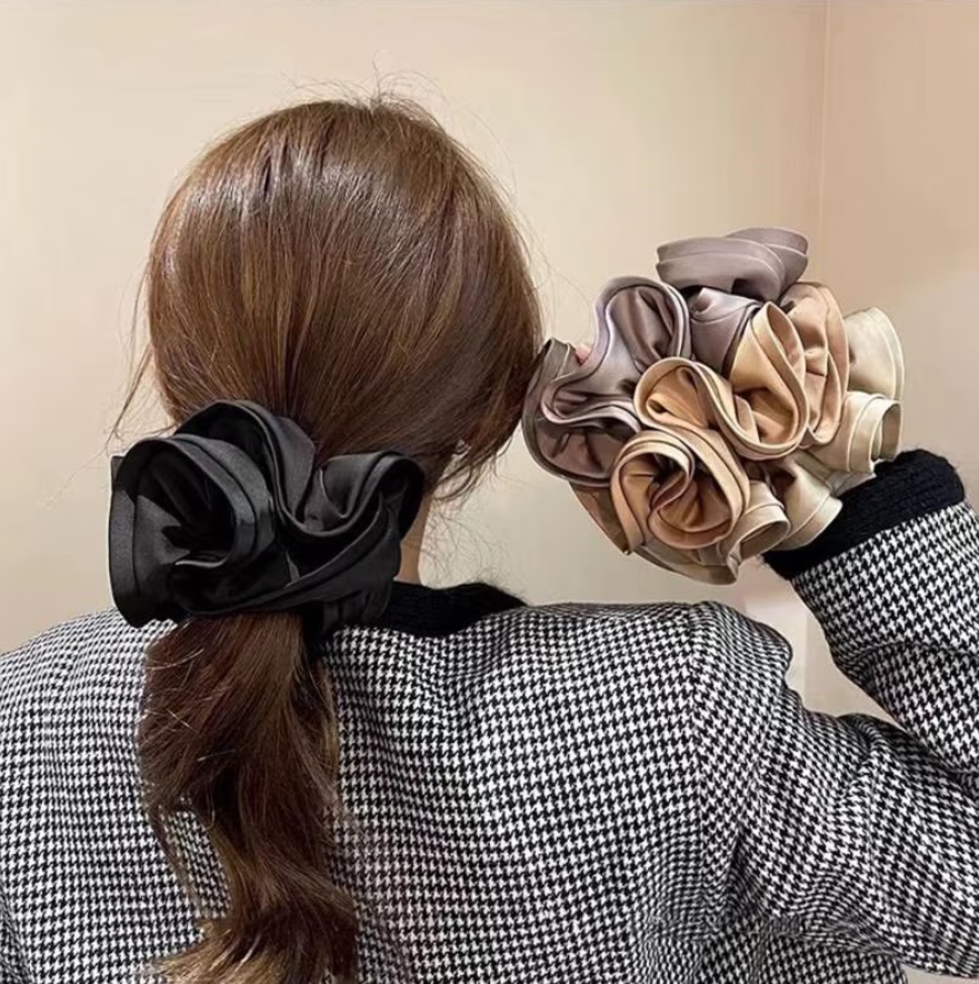 ビッグシュシュ ボリューム ヘアゴム 大きめ サテンシュシュ 大人可愛い レディースヘアアクセサリー