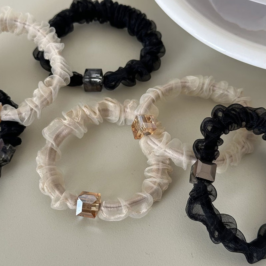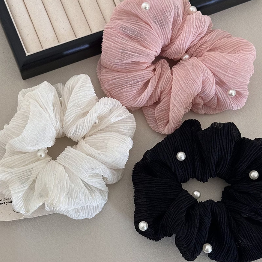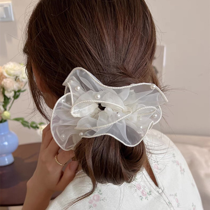 パールを散りばめたフェミニンなデザイン、トレンド見えするシアー素材のシュシュですジュエリー アクセサリー レディースジュエリー アクセサリー ヘアアクセサリー シュシュ