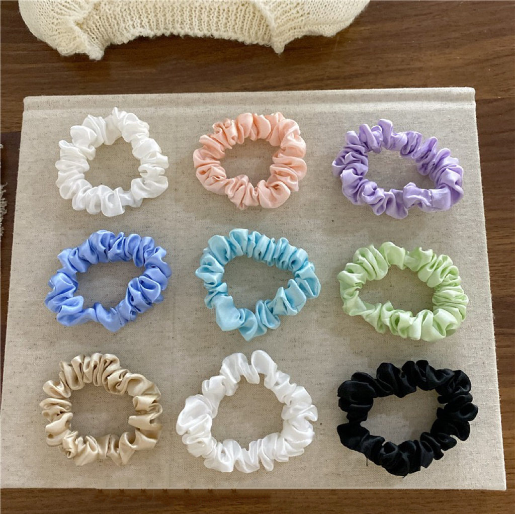 サテンシュシュ3個セット スリムカラーシュシュ レディースヘアアクセサリー ヘアゴム 3色セット シンプル 無地 おしゃれ 大人可愛い