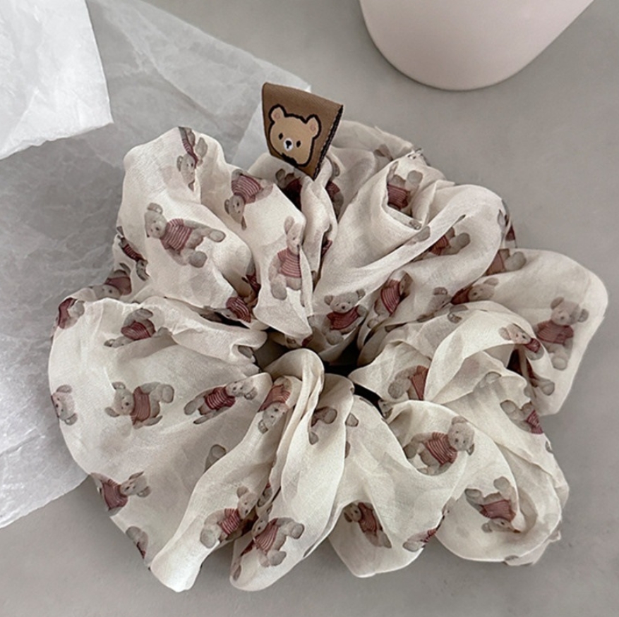 オーガンジーの生地にハート柄がプリントされた、 トレンド感のあるシュシュです ジュエリー アクセサリー レディースジュエリー アクセサリー ヘアアクセサリー シュシュ