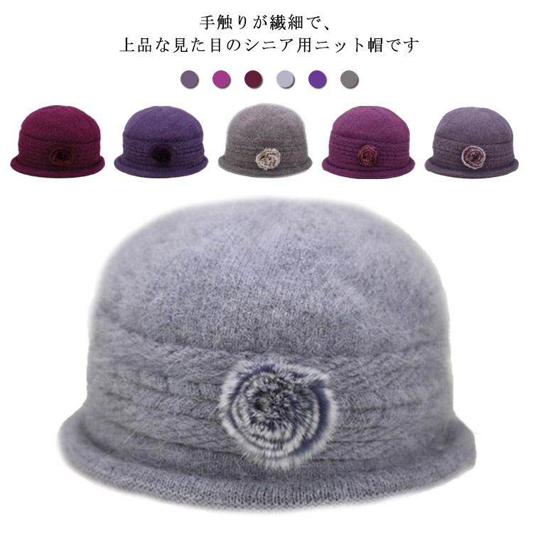 ニット帽 レディース お花モチーフ 帽子 秋冬 ウール 兎の毛 シニア 50代 70代 80代 60代 婦人 上品 ニットキャップ ハート 外出用 女性 お年寄り 高齢者 プレゼント 祖母 防寒 保温