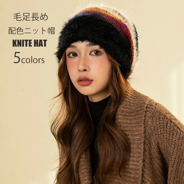 配色ニット帽 大人可愛い 防寒対策 小顔効果 秋 冬 帽子 ニット ニット帽 ニットハット スプライス 女性 おしゃれ きれいめ 大人可愛い