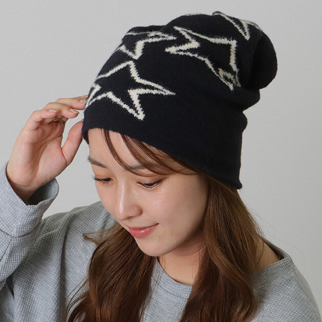 配色 スター ジャガード ニット キャップ 女性 レディース 帽子 ワッチ ビーニー 秋 冬 防寒 保温 耳当て 単色 無地 ローゲージ カジュアル ストリート 小顔効果 ゆったり 可愛い キュート
