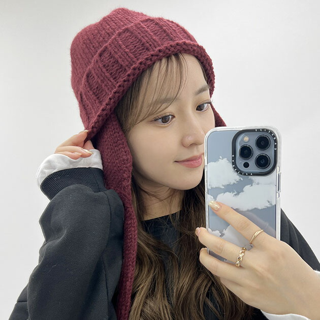 ソリッドカラー 耳あて付き フライト ニット キャップ 女性 レディース 帽子 ハット 秋 冬 防寒 保温 単色 無地 セーター ソフト シンプル カジュアル イヤーマフ あったか リブ 凹凸