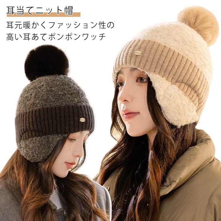 耳当てニット帽 ニット帽 レディース 冬 帽子 防寒 ボンボン 耳カバー イヤーマフ付きバッグ 小物 ブランド雑貨 帽子 レディース帽子 ニット帽