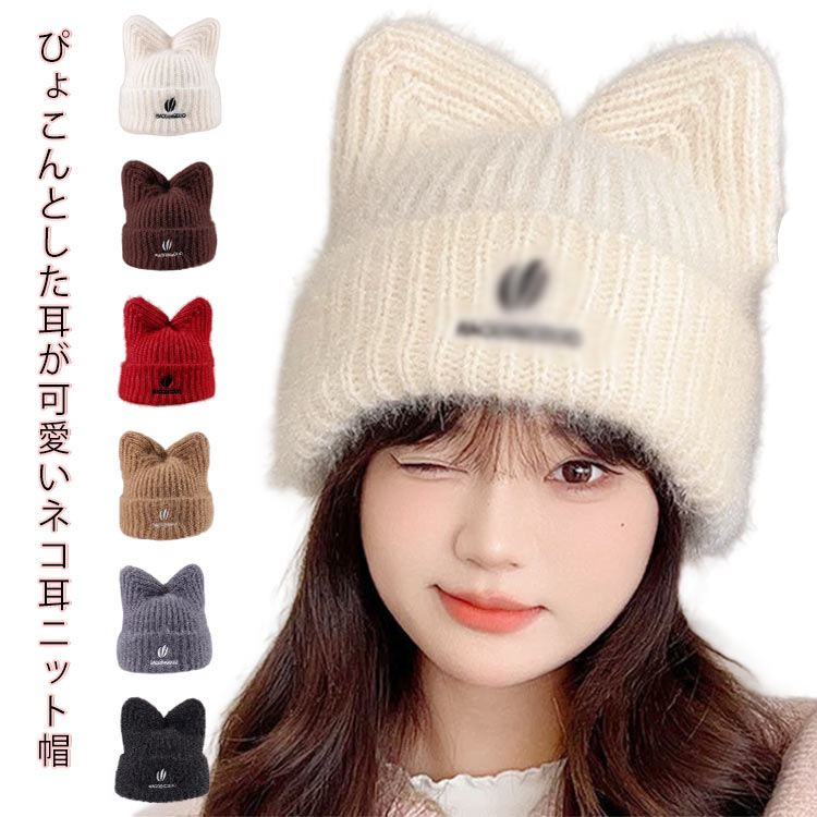 ネコ耳ニット帽 ニット帽 レディース 冬 帽子 防寒 猫耳 ニットキャップ ビーニー帽 おしゃれバッグ 小物 ブランド雑貨 帽子 レディース帽子 ニット帽