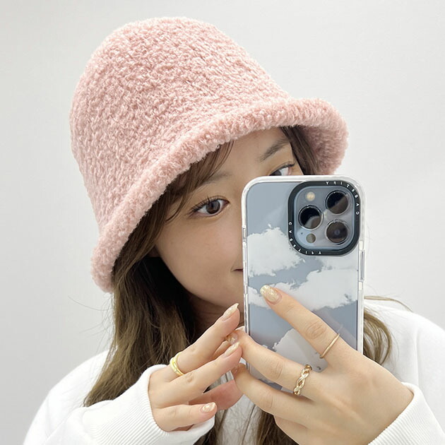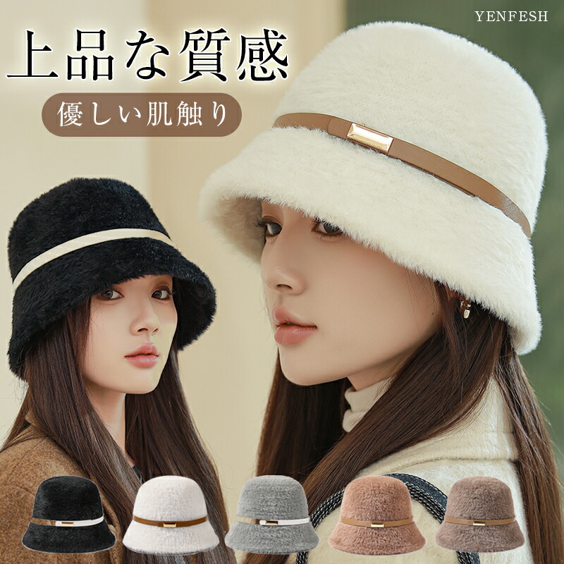 ソリッドカラー オール ボア バケツ ハット 女性 レディース 帽子 キャップ 秋 冬 防寒 保温 もこもこ 単色 無地 もこもこ シンプル ミニマル エレガント 女優 小顔 可愛い キュート 着まわ