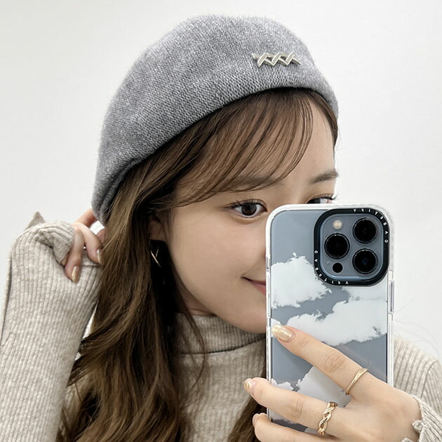 メタリック クロス モチーフ付き ニット ベレー帽 女性 レディース 帽子 キャスケット キャップ 秋 冬 防寒 保温 ソフト あったか 単色 無地 カジュアル ストリート クラシカル ベーシック シ