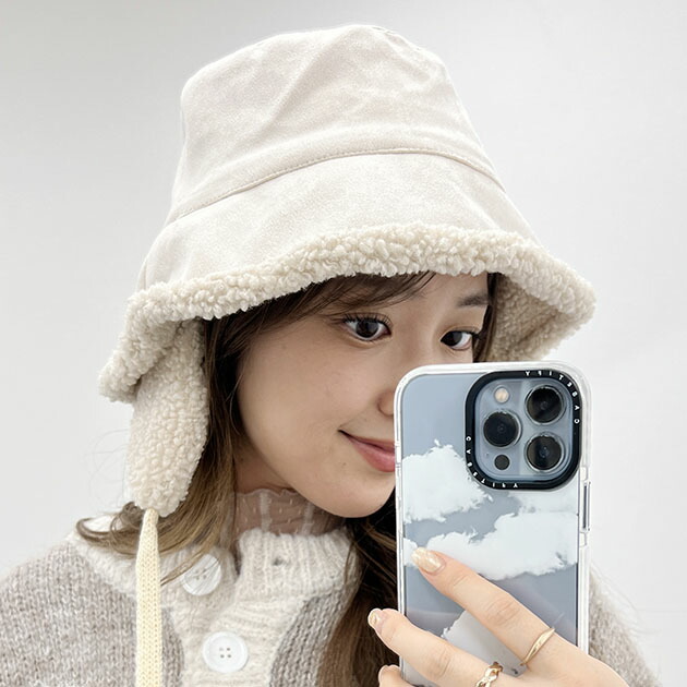スエード調 裏ボア 耳付き バケット ハット 女性 レディース 帽子 キャップ 秋 冬 バケツ バケハ 防寒 保温 ソフト あったか 単色 無地 シンプル ボリューム 耳あて イヤーマフ フライトハッ