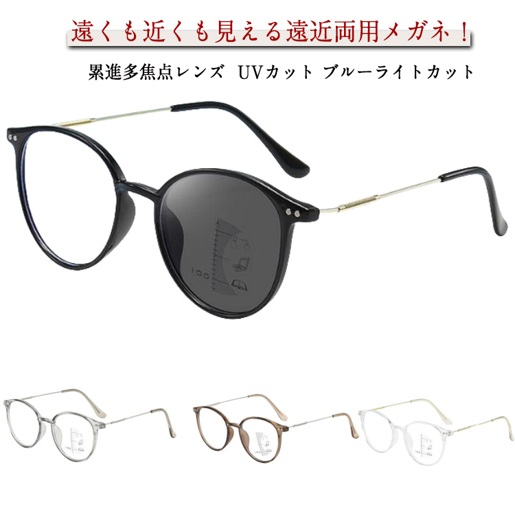 度入り 遠近両用眼鏡 レディース リーディンググラス 丸眼鏡 軽量 +1.0 +1.5 +2.0 +2.5 +3.0 +3.5 おしゃれ かわいい