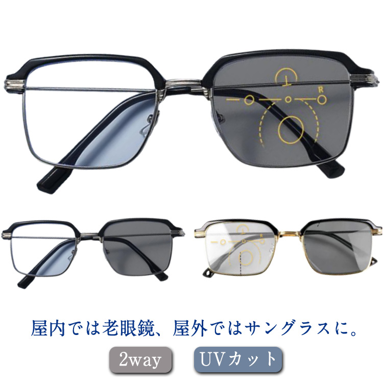 PCメガネ 老眼鏡 メンズ 2way UVカット シニアグラス ブルーライトカット レディース 屋外 リーディンググラス 軽量 調光レンズ 紫外線カット 老眼鏡 屋内 旅行 ビジネス 敬老の日 プレゼ