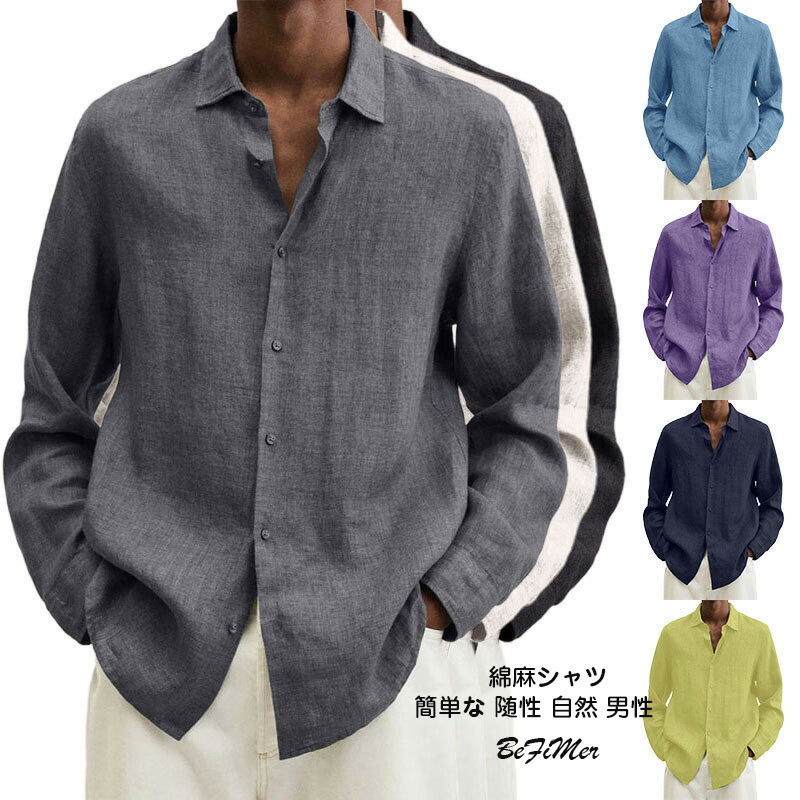 メンズ 綿麻シャツ プルオーバー リネンシャツ 20代 30代 40代メンズファッション トップス シャツ カットソー