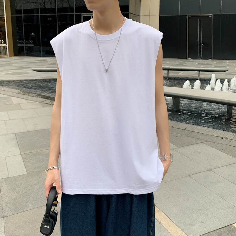 トップス シャツ カットソー 白トップス 袖なし ノースリーブ ラウンドネック クルーネック ストレート シンプル カジュアル おしゃれ かっこいい こなれ感 ラフ メンズライク 無地 夏
