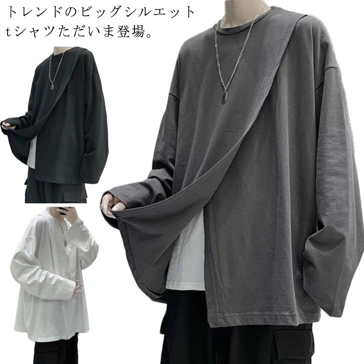 tシャツ メンズ 半袖 ビッグtシャツ オーバーサイズ 大人 重ね着風 レイヤード風 韓国服 春 夏