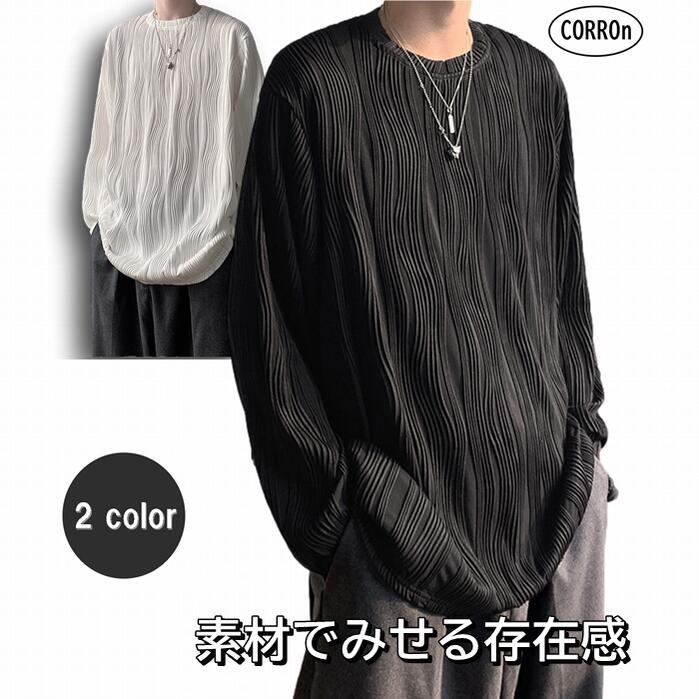 シャツ メンズ トップス ロン カットソー 長袖 クルーネック 無地 白 黒 オーバーサイズ メンズシャツ ゆったり 大きいサイズ 服 10代 20代 30代 40代 50代 ブラック ホワイト