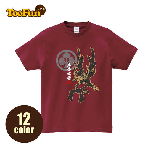 徳川四天王で有名な、戦国武将の本多忠勝の家紋と兜と花押のこだわりTシャツです メンズファッション トップス Tシャツ カットソー