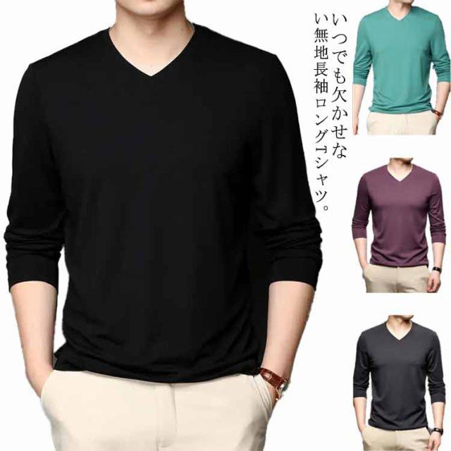 メンズ tシャツ カジュアル シャツ 長袖 トップス カットソー インナー 無地 シンプル ルームウェア 父の日 ギフト プレゼント