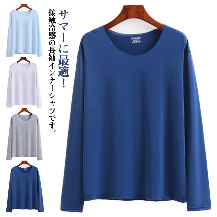 アイスシルク Tシャツ 長袖 メンズ インナー ティーシャツ 夏 クルーネックメンズファッション トップス Tシャツ カットソー