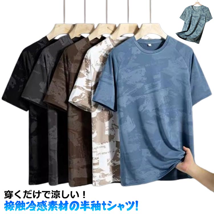 ストレッチ 半袖シャツ 吸汗速乾 メンズ 接触冷感 クルーネック 涼しいシャツメンズファッション トップス シャツ カットソー