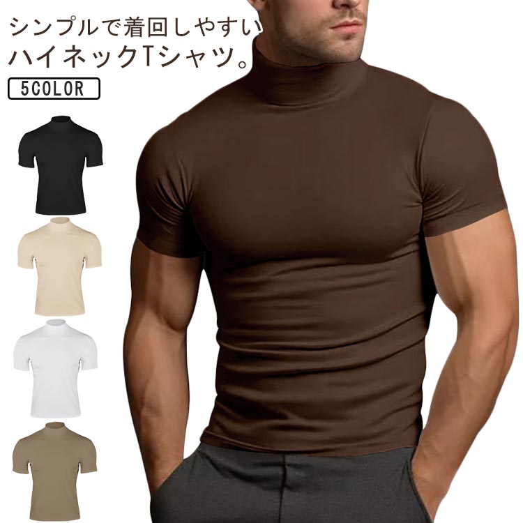 ハイネック メンズ インナーシャツ 半袖 Tシャツ Tシャツ タートルネック サマーニットメンズファッション トップス Tシャツ カットソー