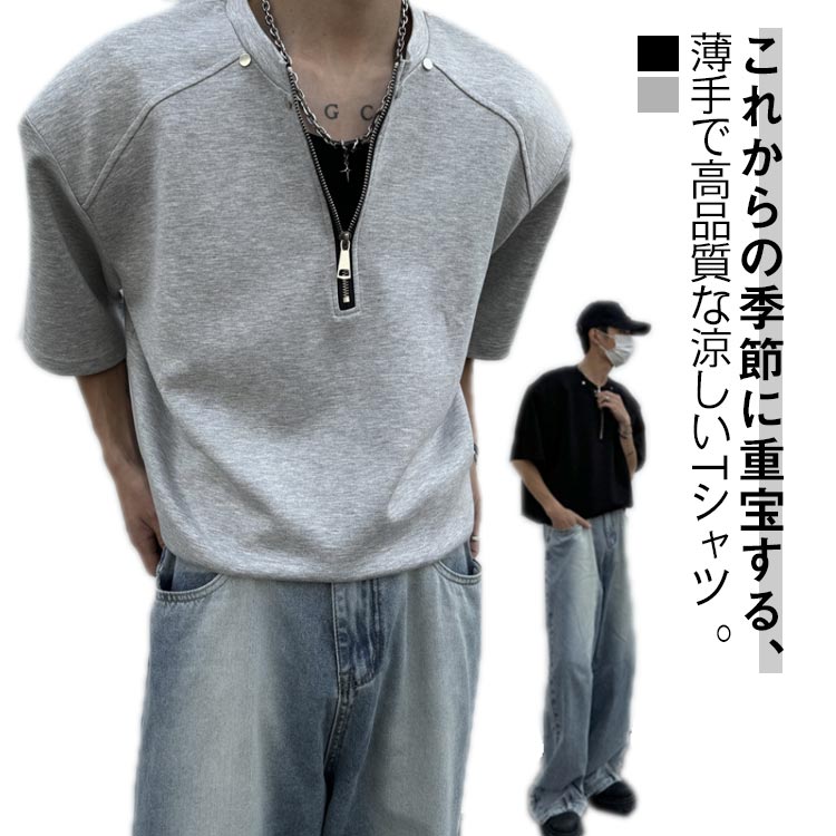 半袖tシャツ メンズ 無地 ジップアップ 半袖tシャツ 春 夏 トップス カットソーメンズファッション トップス Tシャツ カットソー