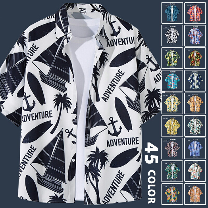 1-2サイズ上をお勧め アロハシャツ メンズ 半袖シャツメンズファッション トップス カジュアルシャツ