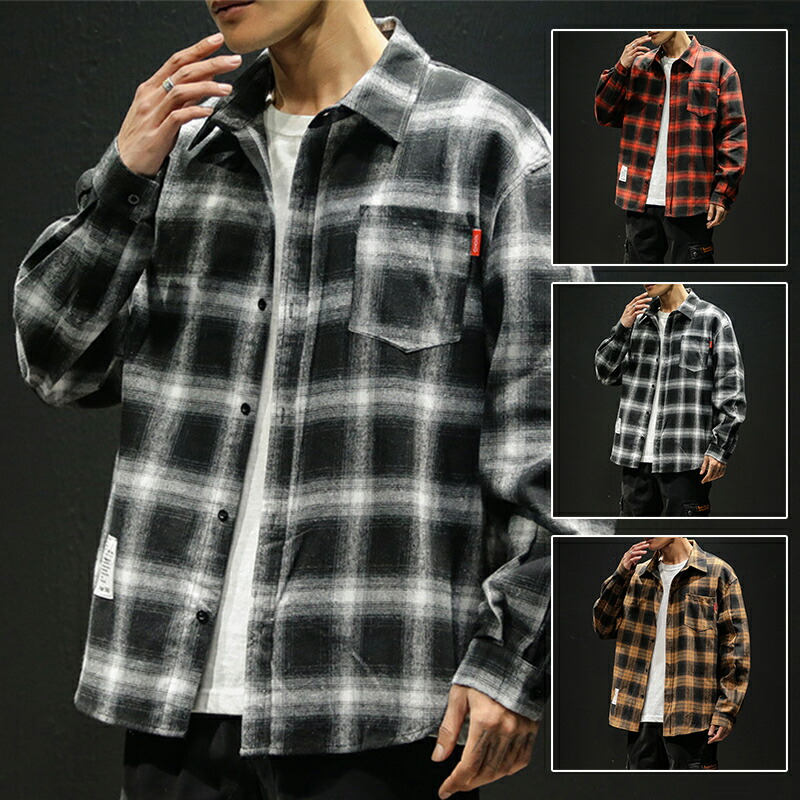 1~2サイズ上の方をお勧め ネルシャツ シャツ メンズ ジャケット カーディガン チェック柄メンズファッション トップス カジュアルシャツ