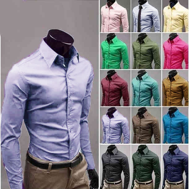 カラーシャツ 長袖シャツ メンズ シャツ ワイシャツ 無地 17色 メンズファッション トップス カジュアルシャツ