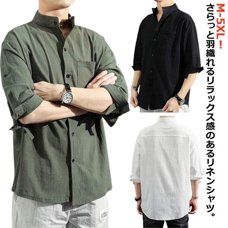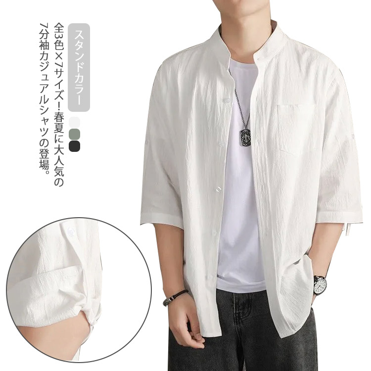 7分袖シャツ メンズ トップス コットン カジュアルシャツ シャツ 7分袖 ブラウス 夏 立ち襟メンズファッション トップス カジュアルシャツ