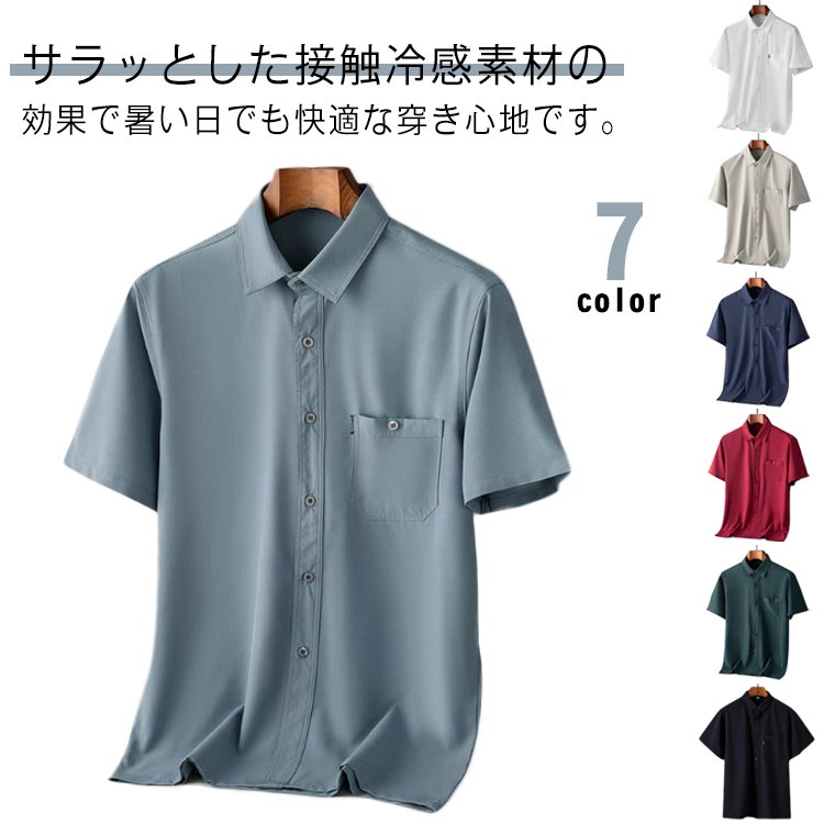 全7色 ワイシャツ ビジネス ひんやり 標準体 接触冷感 半袖 メンズ 半袖ワイシャツ 形態安定 仕事 シャツ 大きいサイズ 紺 青 ブルー ピンク ボタンダウン カッターシャツ 接触冷感 白