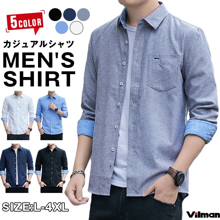 カジュアルシャツ メンズ 長袖シャツ ビジネス シャツ トップス おしゃれ スリムシャツ 無地 長袖 カジュアル 細身 紳士服