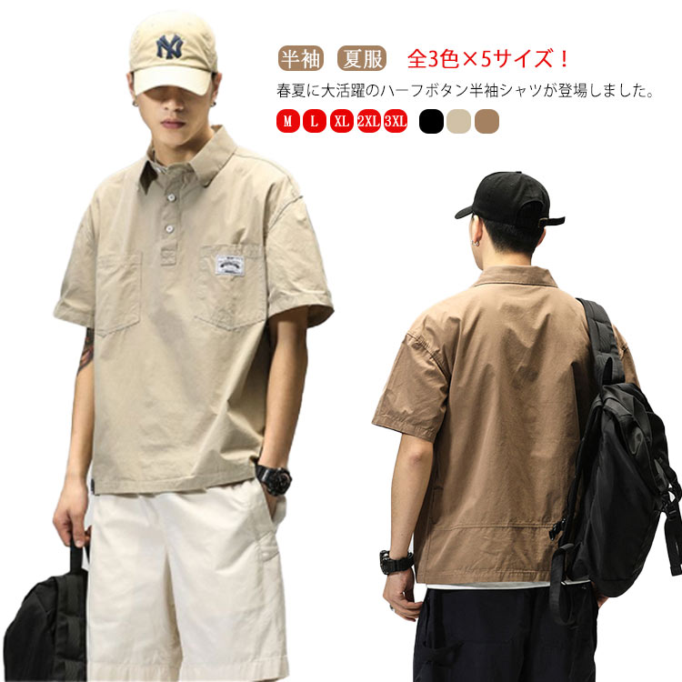 シャツ プルオーバーシャツ メンズ ハーフボタン 半袖 カジュアルシャツ 春夏メンズファッション トップス カジュアルシャツ