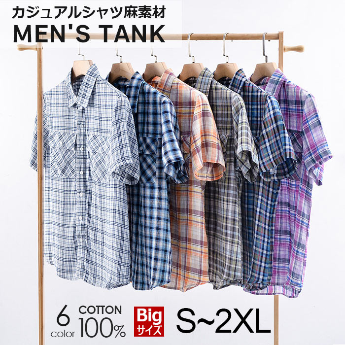 送料無 リネンシャツ 麻素材 薄手 父の日 半袖 チェック柄 カジュアルシャツ 男性 春服 夏服 大きいサイズ ビッグシルエット 肌着インナー ナチュラル シンプル 清涼感 涼しい