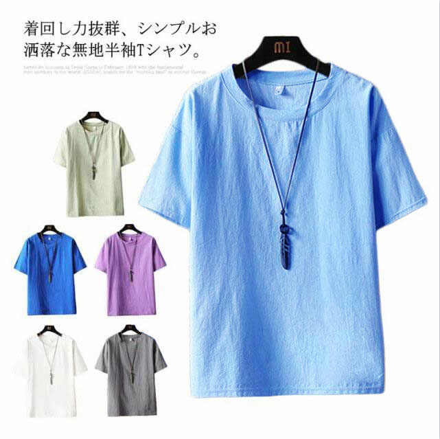 さらっとしていて透け感のあるリネン混半袖袖シャツ♪Tシャツ メンズ 半袖Tシャツメンズファッション トップス カジュアルシャツ