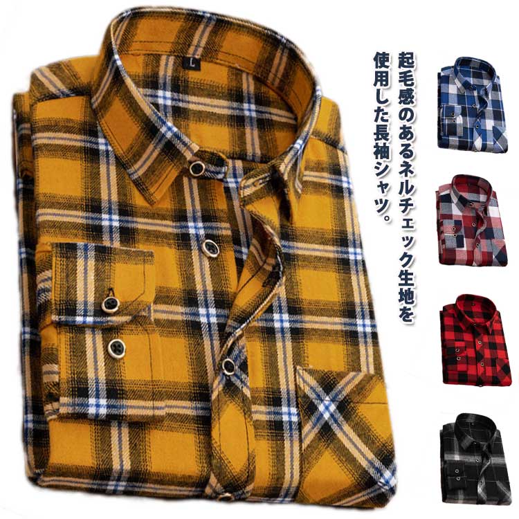 メンズシャツ ネルシャツ 長袖シャツ チェックシャツ 小柄チェック柄 秋冬 春 長袖トップス 大きいサイズ